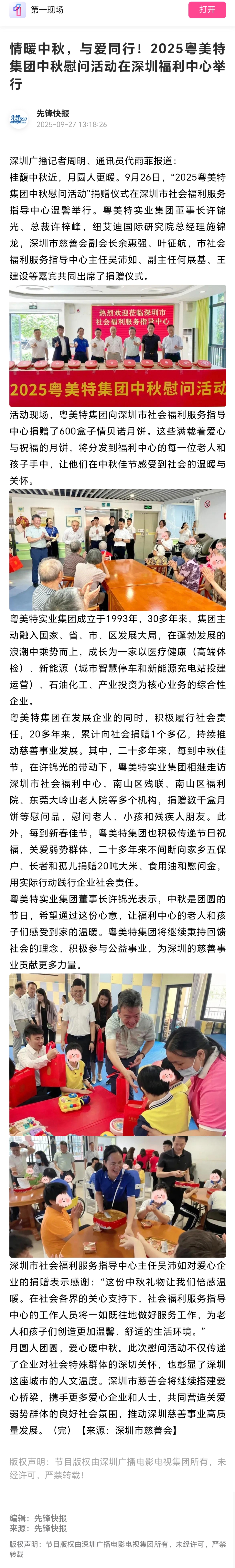 【第一现场】情暖中秋,与爱同行!2025粤美特集团中秋慰问活动在深圳市社会福利服务指导中心举行
